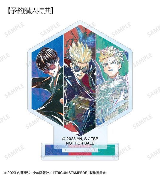 ヴァッシュ・ザ・スタンピード、ニコラス・D・ウルフウッド、ミリオンズ・ナイヴズのビジュアルを新たなタッチで魅力的に表現し、BIGなアクリルスタンドに仕上げました。