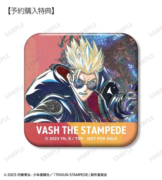 当商品を1BOX、または単品にて1BOX相当数ご注文ごとに、予約購入特典として「ヴァッシュ・ザ・スタンピード Ani-Art 第2弾 スクエア缶バッジ AMNIBUS限定特典」を付属いたします。