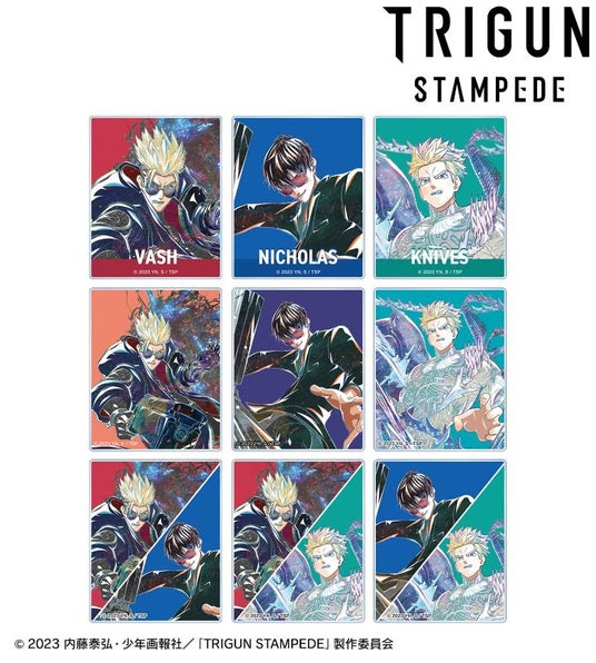 ヴァッシュ・ザ・スタンピード、ニコラス・D・ウルフウッド、ミリオンズ・ナイヴズのビジュアルを新たなタッチで魅力的に表現し、アクリルカードに仕上げました。