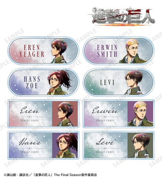 種類 :全7種(エレン、ミカサ、アルミン、ジャン、エルヴィン、ハンジ、リヴァイ)