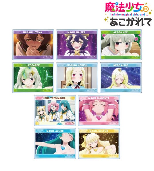 柊 うてな、マジアベーゼ、阿良河 キウィ、レオパルト、杜乃 こりす、ネロアリス、花菱 はるか、水神 小夜、天川薫子、マジアマゼンタ、マジアアズール、マジアサルファの印象的なシーンをアクリルカードに仕上げました。