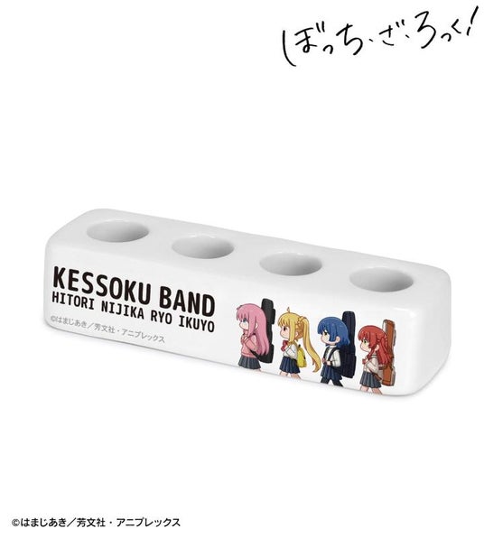 後藤ひとり、伊地知虹夏、山田リョウ、喜多郁代が歩いているちびキャラを新たに描き起こし、陶器製の歯ブラシスタンドに仕上げました。