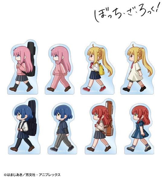 後藤ひとり、伊地知虹夏、山田リョウ、喜多郁代が歩いているちびキャラを新たに描き起こし、アクリルマスコットに仕上げました。