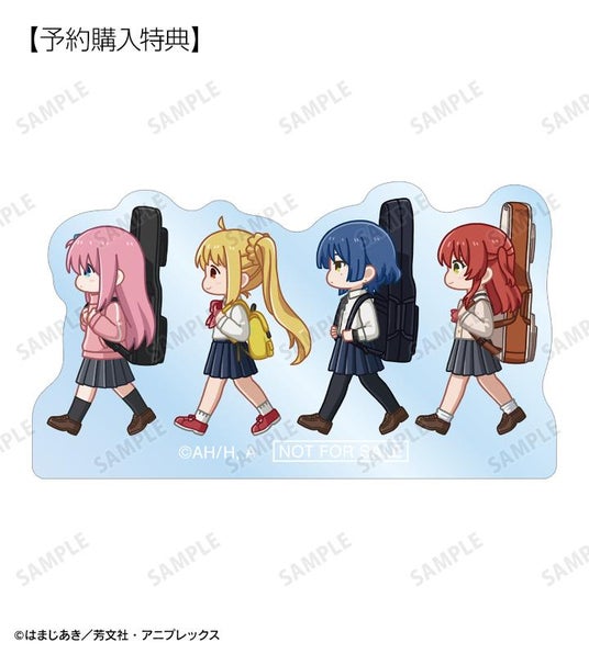 後藤ひとり、伊地知虹夏、山田リョウ、喜多郁代が歩いているちびキャラを新たに描き起こし、BIGなアクリルスタンドに仕上げました。