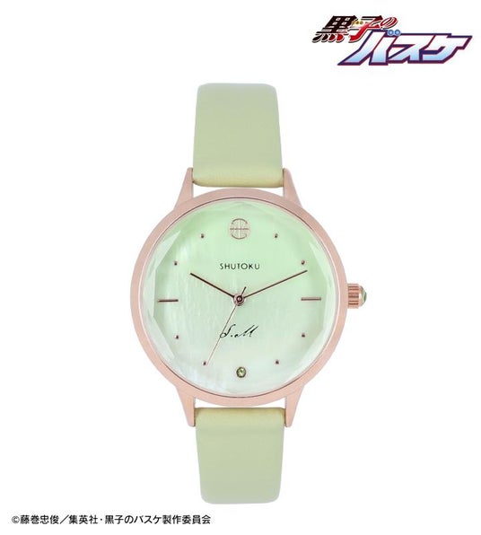 緑間真太郎をイメージしたカラーバンドに、ピンクゴールドのケースを組み合わせた、上品で身に着けやすいデザインです。