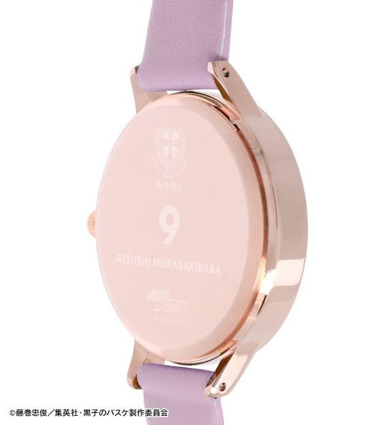 紫原 敦をイメージしたカラーバンドに、ピンクゴールドのケースを組み合わせた、上品で身に着けやすいデザインです。