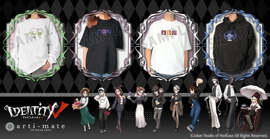 株式会社アルマビアンカはアニメイト池袋本店4F、 秋葉原1号館3F、渋谷、梅田「Space A la mode」にて、『IdentityV 第五人格』から「arti-mate」のオリジナルアパレル、雑貨を限定販売いたします。