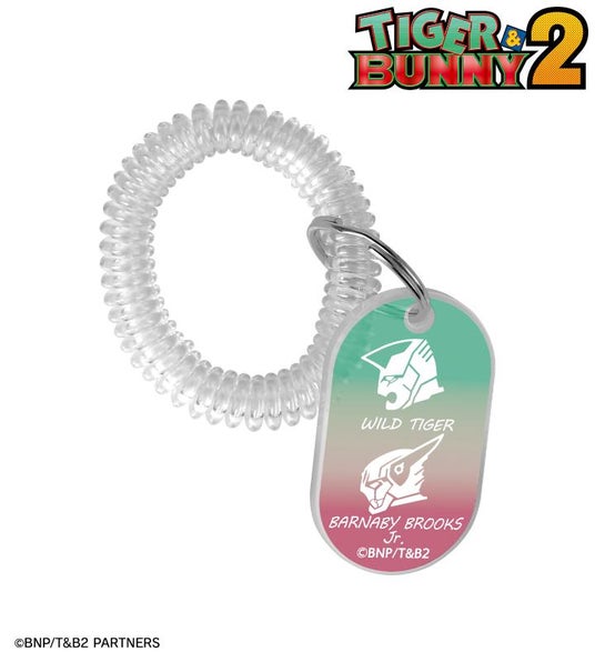 ワイルドタイガー、バーナビー・ブルックス Jr.のヒーローマーク、『TIGER & BUNNY 2』最終話のタイトルを、昔ながらのホテルのルームキーをイメージしたアクリルキーホルダーに仕上げました。