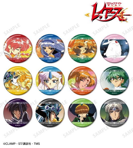 獅堂光、龍咲海、鳳凰寺風、モコナ、エメロード、クレフ、プレセア、フェリオ、ランティス、ザガート、アスコット、イーグル・ビジョンのイラストをグリッター加工を施した缶バッジに仕上げました。