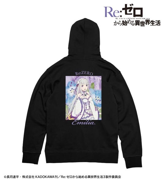 エミリア、レム、ラム、ベアトリスのイラストを新たなタッチで魅力的に表現し、パーカーに仕上げました。