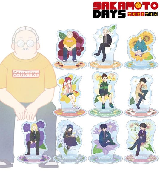 坂本 太郎、朝倉 シン、陸 少糖、眞霜 平助、ピースケ、南雲、神々廻、大佛、勢羽 夏生、陸 無糖のイラストをボタニカルデザインに落とし込んで繊細なタッチで新たに描き起こし、アクリルスタンドに仕上げました。