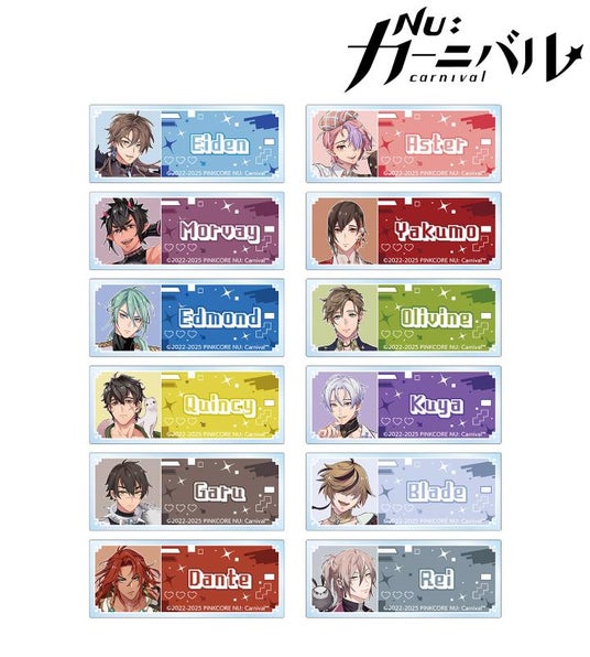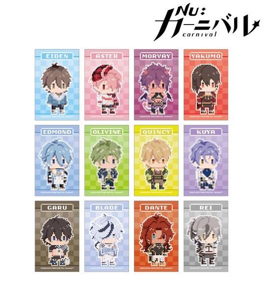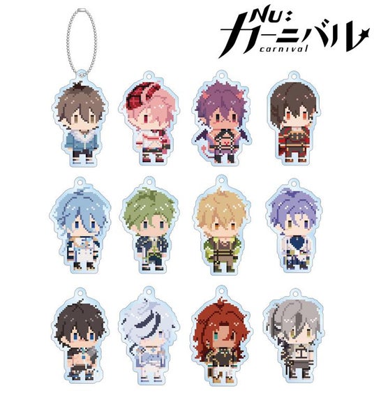 エイト、エスター、モルフィス、八雲、エドモンド、オリビン、ケシー、玖夜、ガル、ブレイド、エンテン、レイの描き起こしドット風ちびキャライラストをアクリルキーホルダーに仕上げました。
