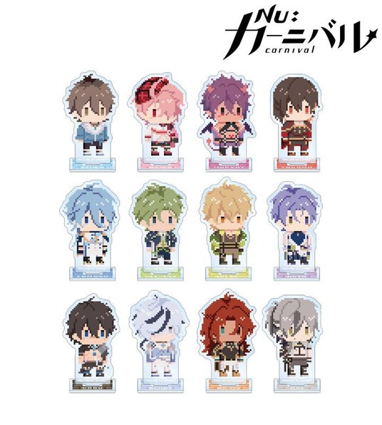 エイト、エスター、モルフィス、八雲、エドモンド、オリビン、ケシー、玖夜、ガル、ブレイド、エンテン、レイの描き起こしドット風ちびキャライラストをアクリルスタンドに仕上げました。