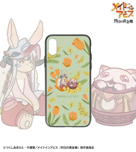 ナナチ、壺ミーティのイラスト、キャラクターの名前をボタニカルデザインに落とし込んで繊細なタッチで新たに描き起こし、強化ガラスiPhoneケースに仕上げました。