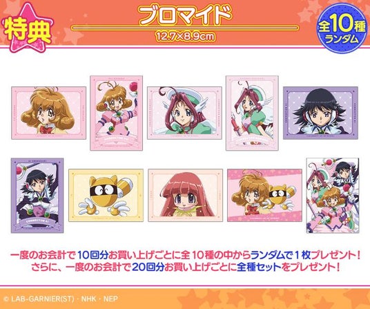 一度のお会計で10回分ご購入ごとに特典ブロマイド(全10種)の中からランダムで1枚、20回分ご購入ごとに全種セットプレゼント!
