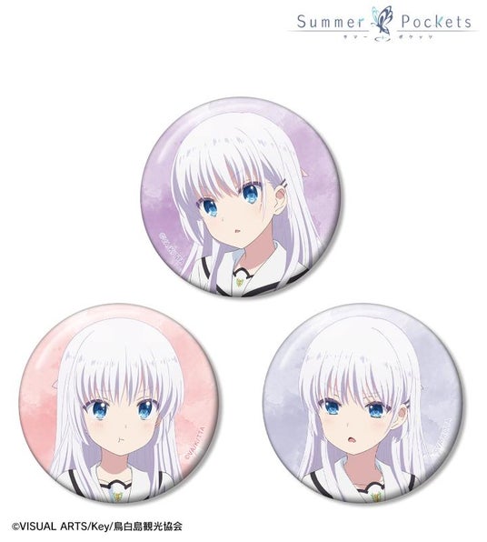 鳴瀬しろは、空門蒼、久島鴎、紬ヴェンダース、加藤うみのイラストを缶バッジ3個セットに仕上げました。