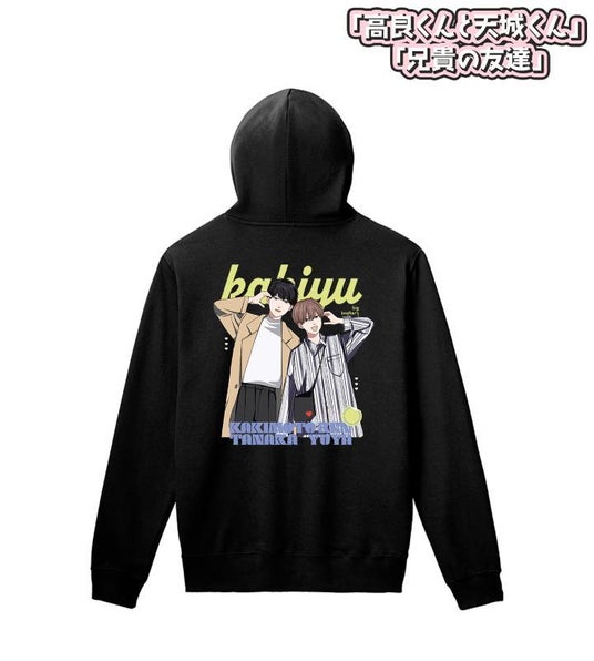 はなげのまい先生 描き下ろしイラストの高良瞬、天城太一とtakatenの文字、柿本健、田中優也とkakiyuの文字を組み合わせて、パーカーに仕上げました。