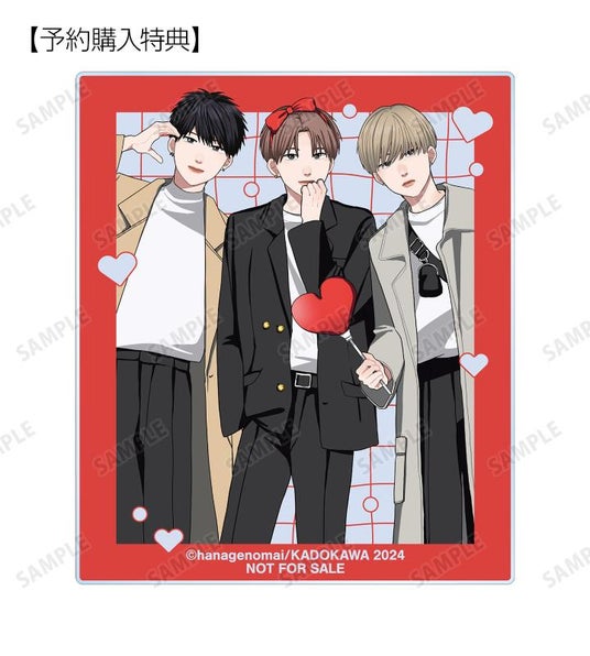 当商品を1BOX、または単品にて1BOX相当数ご注文ごとに、予約購入特典として「はなげのまい先生 描き下ろし 柿本健&田中隼人&高良瞬 プリントシール風ver. アクリルネームプレート AMNIBUS限定特典」を付属いたします。
