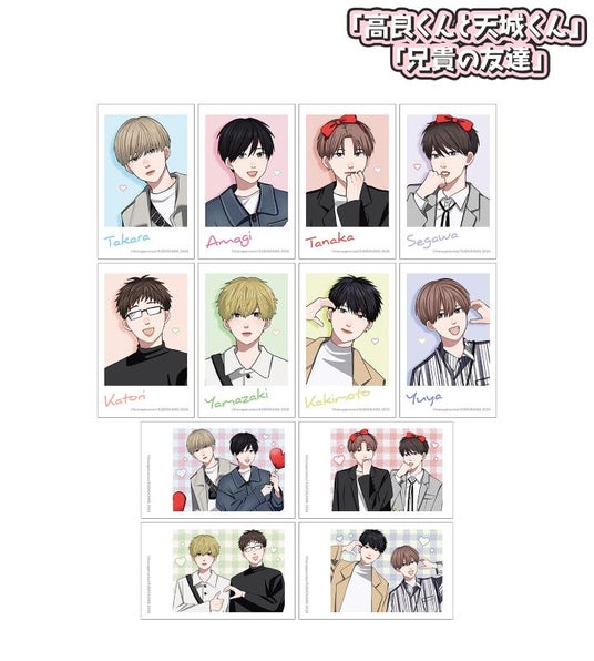 はなげのまい先生 描き下ろしイラストの高良瞬、天城太一、田中隼人、瀬川拓海、香取康介、山崎聡、柿本健、田中優也をインスタントカメラ風のイラストカードに仕上げました。