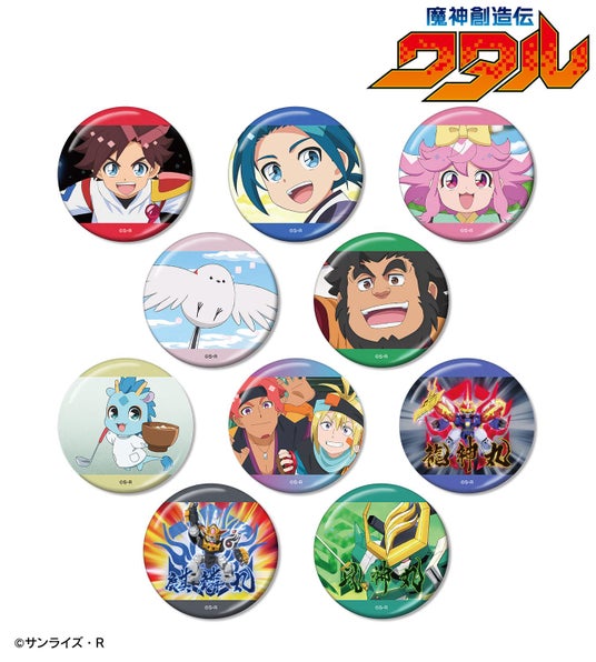 星部ワタル、天部カケル、マロ、ウズメ、御富良院、リュンリュン、ショウ、マイガー、龍神丸 、麒麟丸、風神丸の印象的なシーンをメタリック仕様の缶バッジに仕上げました。