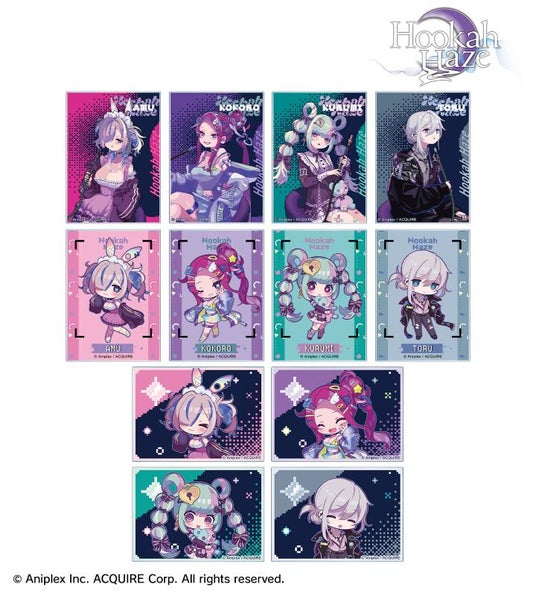 愛上あむ、明月院こころ、古森くるみ、炭木トオルのドットイラストやデフォルメイラストをアクリルカードに仕上げました。