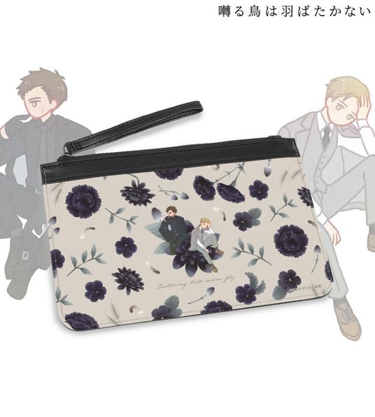 矢代、百目鬼のイラストをボタニカルデザインに落とし込んで繊細なタッチで新たに描き起こし、PUレザーフラットポーチに仕上げました。