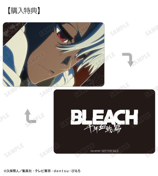 黒崎一護、浦原喜助、京楽春水、平子真子、朽木白哉、阿散井恋次、日番谷冬獅郎、更木剣八、涅マユリ、朽木ルキア、卯ノ花烈の印象的なシーンをプラスチックカードに仕上げました。