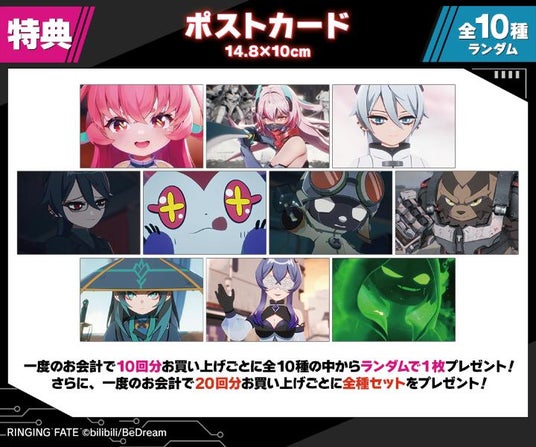 一度のお会計で10回分ご購入ごとに特典ポストカード(全10種)の中からランダムで1枚、20回分ご購入ごとに全種セットプレゼント!