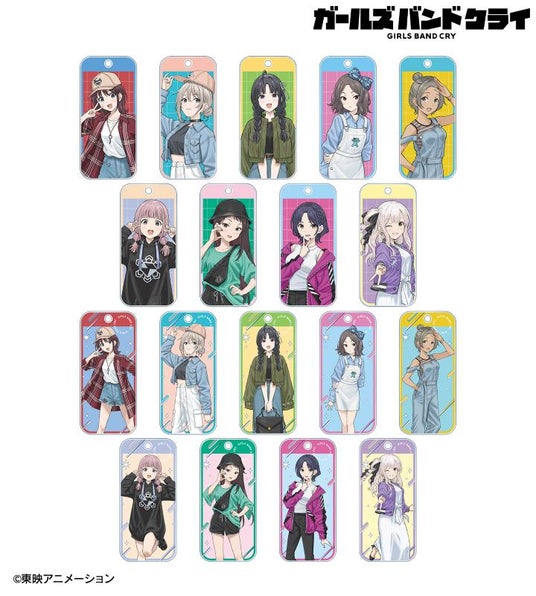 井芹 仁菜、河原木 桃香、安和 すばる、海老塚 智、ルパ、ヒナ、リン、ナナ、アイの描き起こしちびキャライラストをメインにデザインし、アクリルキーホルダーに仕上げました。