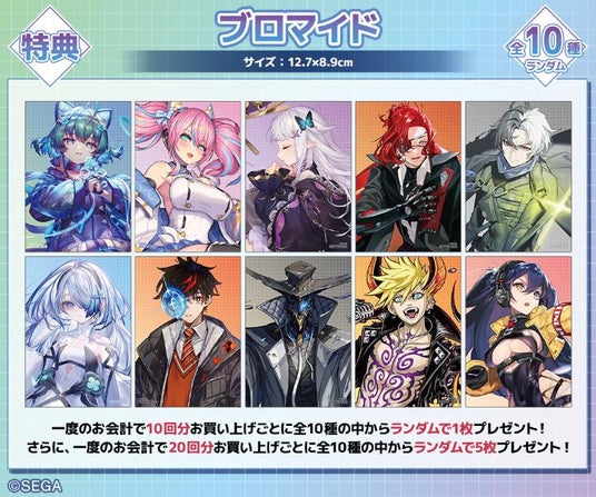 一度のお会計で10回分ご購入ごとに特典ブロマイド(全10種)の中からランダムで1枚、20回分ご購入ごとにランダムで5枚プレゼント!