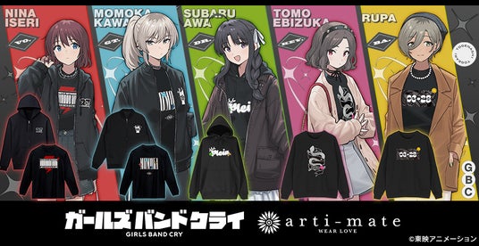 漫画・アニメのオリジナルグッズを販売する株式会社アルマビアンカ(本社:東京都中野区、代表取締役:坂井智成)は、『ガールズバンドクライ』から「arma bianca」 × 「アニメイト」による共同ブランド「arti-mate」のオリジナルアパレル、雑貨をアニメイト池袋本店4F、秋葉原1号館3F、渋谷、梅田 「Space A la mode」にて、2026年2月14日(土)から限定販売いたします。アニメイト通販では本日2025年11月27日(木)より予約を開始いたします。