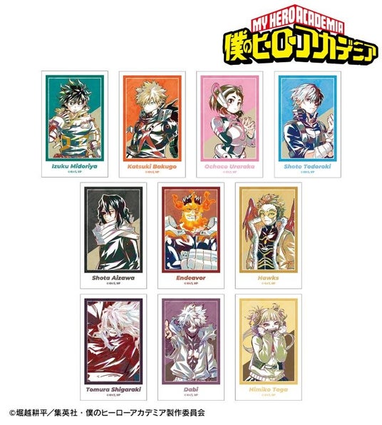 種類 :全10種(緑谷出久、爆豪勝己、麗日お茶子、轟焦凍、相澤消太、エンデヴァー、ホークス、死柄木弔、荼毘、トガヒミコ)