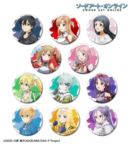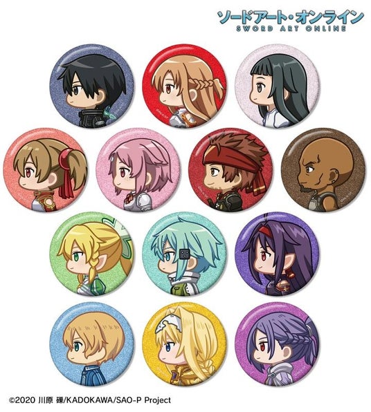 キリト、アスナ、ユイ、シリカ、リズベット、クライン、エギル、リーファ、シノン、ユウキ、ユージオ、アリス、ミトが歩いているちびキャラを新たに描き起こし、グリッター加工を施した缶バッジに仕上げました。