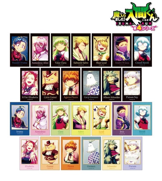 鈴木入間、アスモデウス・アリス、ウァラク・クララ、サブノック・サブロ、シャックス・リード、アンドロ・M・ジャズ、クロケル・ケロリ、イクス・エリザベッタ、カイム・カムイ、アガレス・ピケロ、ガープ・ゴエモン、アロケル・シュナイダー、プルソン・ソイのイラストをブロマイドに仕上げました。