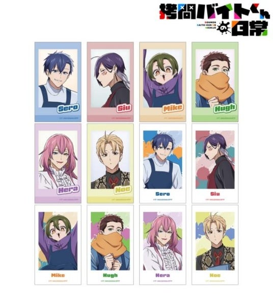 セロ、シウ、ミケ、ヒュー、ヘラ、ノエのイラストをインスタントカメラで撮影したようなデザインのイラストカードに仕上げました。
