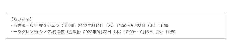 おまけキャンペーン【10連セット】購入で描き下ろしイラストや名場面を使用した「特製ミニブロマイド」をランダムで1枚プレゼント♪