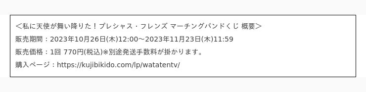 株式会社KADOKAWA(本社:東京都千代田区、取締役 代表執行役社長 CEO:夏野 剛、以下 KADOKAWA)は、運営するオンラインくじサービス「くじ引き堂」において、『私に天使が舞い降りた!プレシャス・フレンズ』オリジナル商品が手に入る<私に天使が舞い降りた!プレシャス・フレンズ マーチングバンドくじ>を、2023年10月26日(木)正午(12時)より販売します。