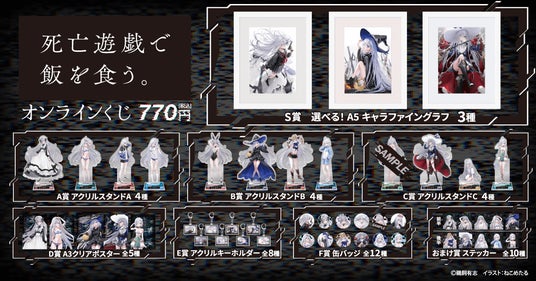 株式会社KADOKAWA(本社:東京都千代田区、取締役 代表執行役社長 CEO:夏野 剛、以下 KADOKAWA)は、運営するオンラインくじサービス「くじ引き堂」において、『死亡遊戯で飯を食う。』の豪華賞品が手に入る<死亡遊戯で飯を食う。オンラインくじ>を、2025年5月15日(木)12時より販売します。