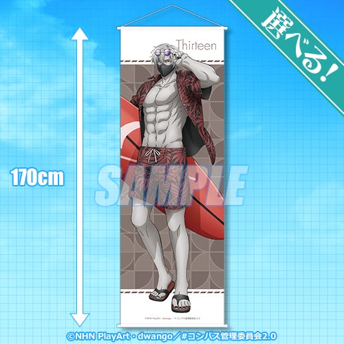 賞品は、水着を着た13(サーティーン)、零夜、ジャンヌの描き下ろしイラストを使用したオリジナルグッズとなります。イラストを堪能できる特大タペストリーや、Tシャツ、アクリルスタンドフィギュア、アクリルキーホルダー、缶バッジなどを多数展開しております。