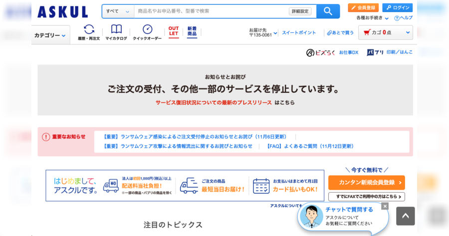 週間人気記事ランキングアスクルのランサムウェア攻撃被害で事業所向けECや個人向けECで一部情報が流出した可能性/アスクルが「WMS使わず手運用」「FAXで注文受付」で出荷のトライアル運用【ネッ担アクセスランキング】